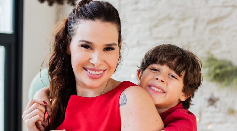 Na foto: A influenciadora Leticia Alves e o filho Theo (Créditos: Divulgação)