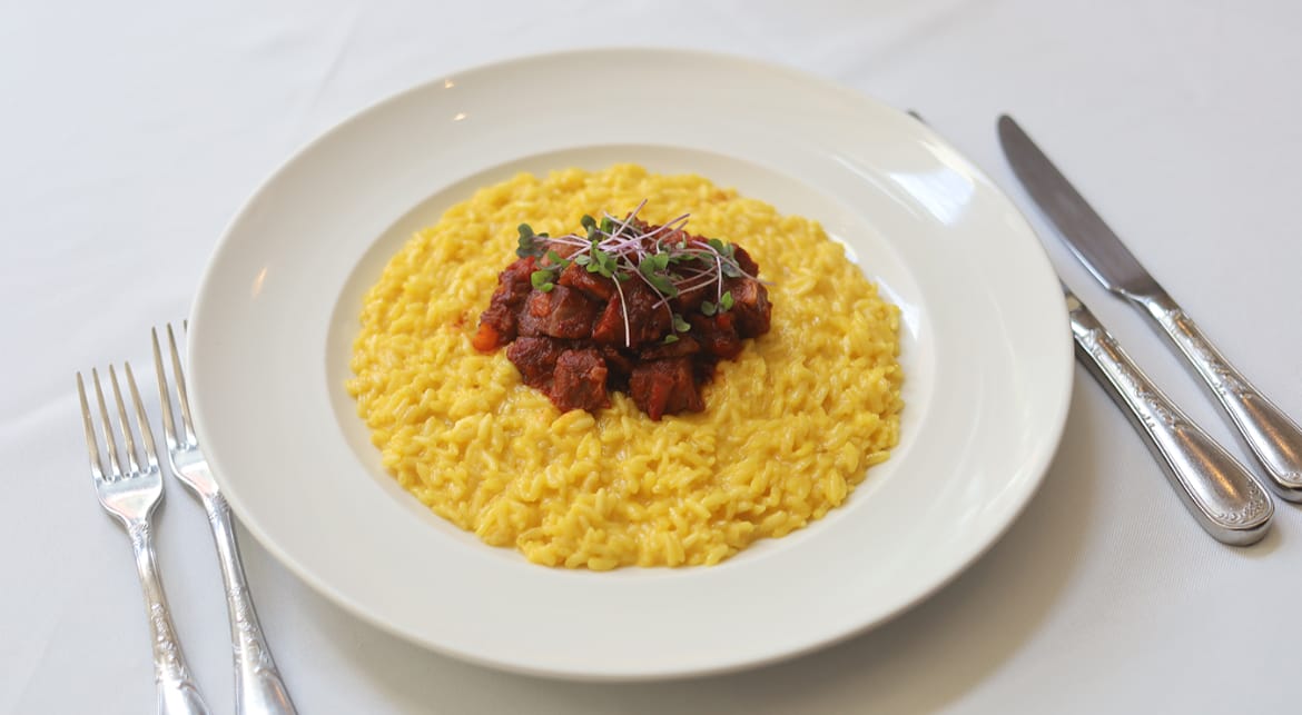 Giro d’Italia – DOC Trattoria & Wine BarPrato da semana:Risotto alla Milanese con Ragù di Ossobuco (Região da Lombardia)