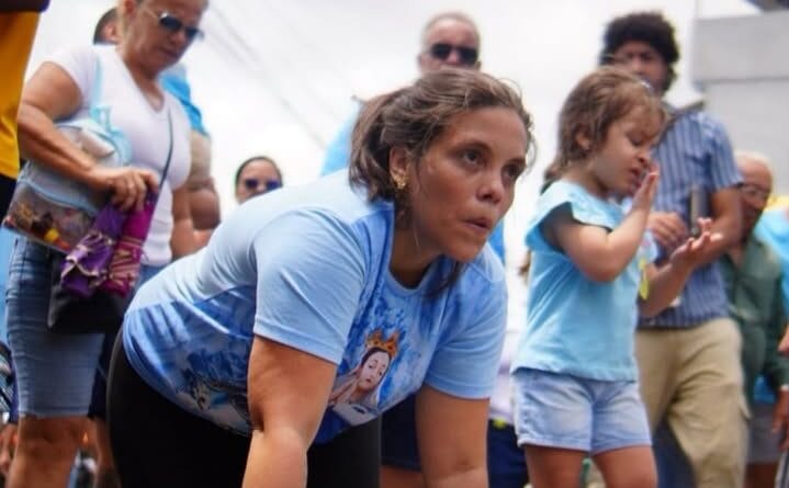 Mãe demonstra força e devoção ao subir Morro da Conceição de joelhos pela recuperação do filho
