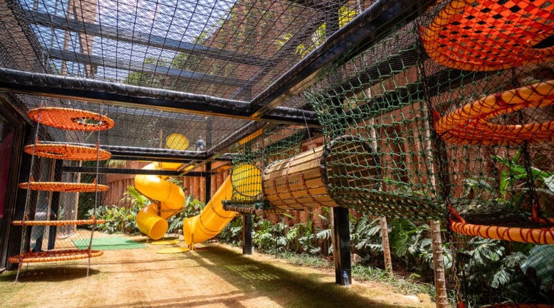 Entre as atrações que incentivam o brincar e o pular, estão duas camas elásticas suspensas, uma casinha cinematográfica com cinema, um camarim de fantasias e maquiagem e um brinquedão gigante de 200 metros de percurso.