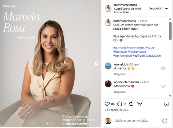 Com forte presença digital, especialmente no Instagram @nutrimarcelarosa, ela compartilha conteúdos sobre saúde, alimentação consciente e bem-estar, reforçando sua missão de mostrar que nutrição é sobre conexão, confiança e transformação.