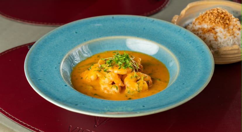 • Camarão Thai – camarões salteados ao molho de leite de coco e ervas frescas, servidos com arroz jasmim e crocantes de panko;